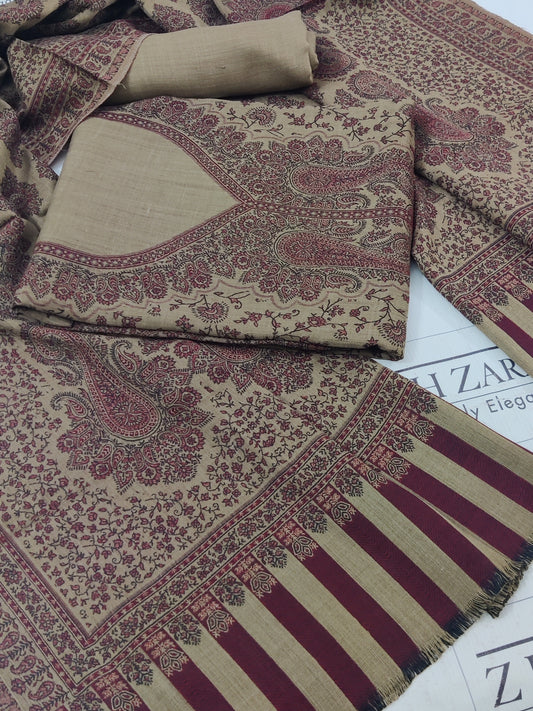 Camel Coffee Gala Double Kani Pashmina 3pc