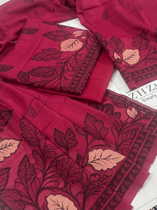 Sold outMaroon Jacquard Kani Pashmina 3pc