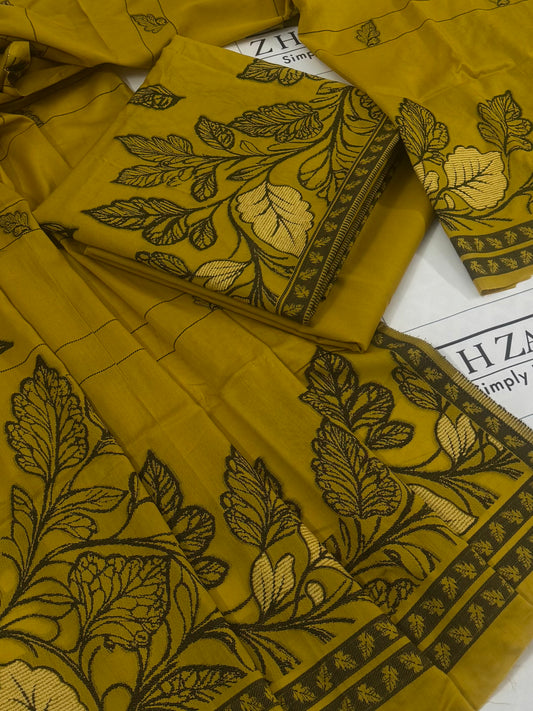 Sold outMustard Jacquard Kani Pashmina 3pc