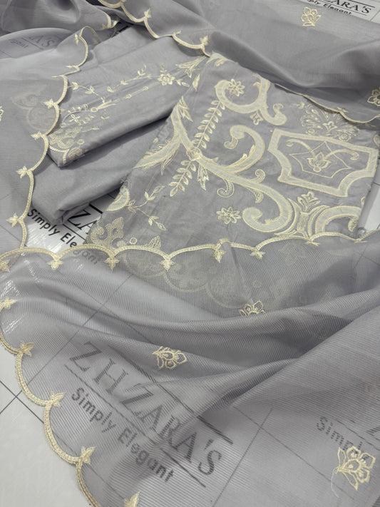 Bluish Grey Mirror Cutwork 2pc