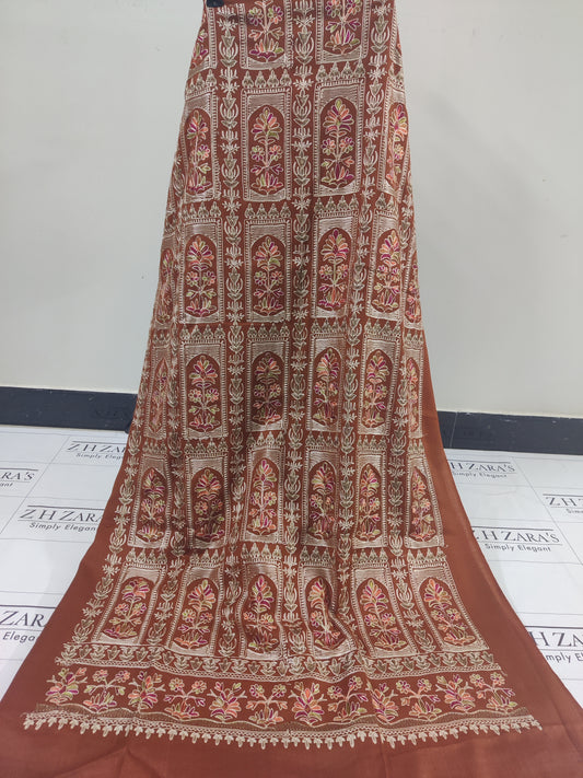Sold outEmbroidered Hazel Brown Pashmina 3pc