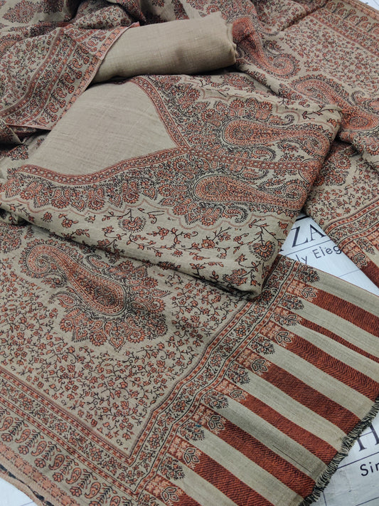 Camel Coffee Gala Double Kani Pashmina 3pc
