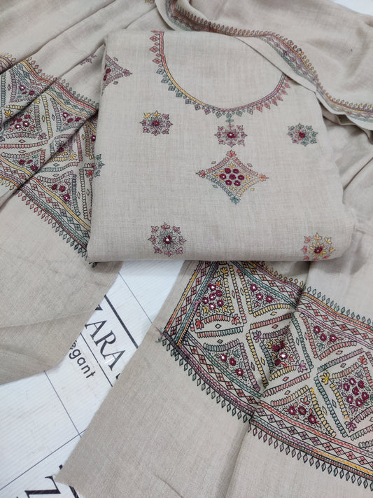 Light Beige Needle Embroidery Pashmina 3pc