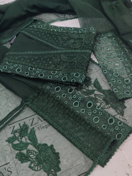 Embroidered Bottle Green Pashmina 3pc