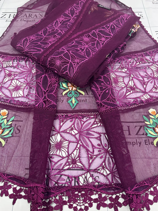 Sold outMagenta Resham Silk Cutwork 3pc