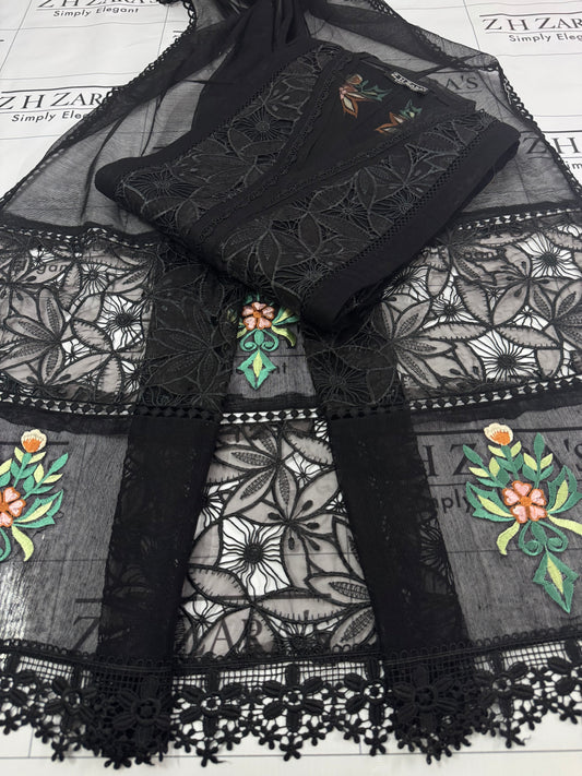 Black EMB Co-Ord Set Stitched