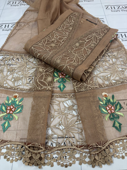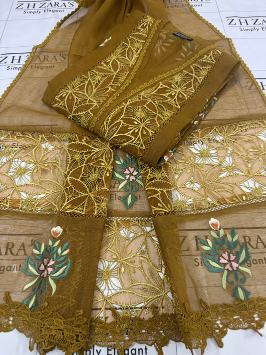Coffee Gold EMB Co-Ord Set Stitched