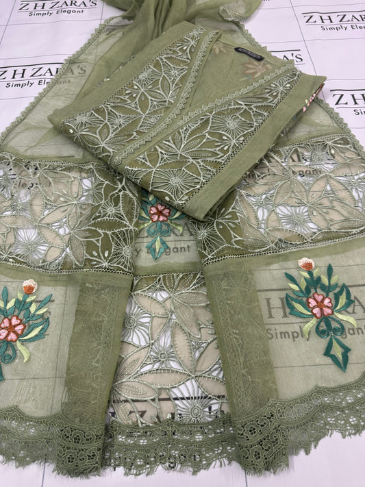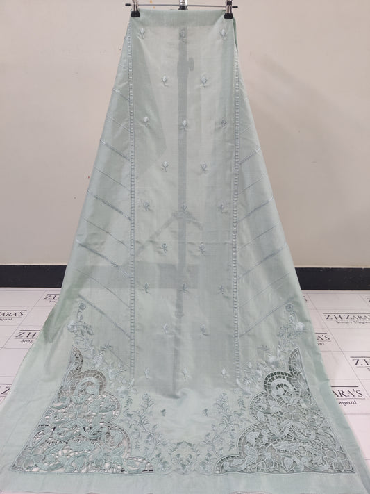 Olive Mint Green Resham Silk Cutwork 3pc