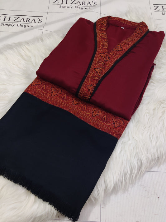 Maroon Kani Shirt Stitched
