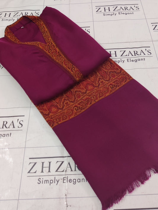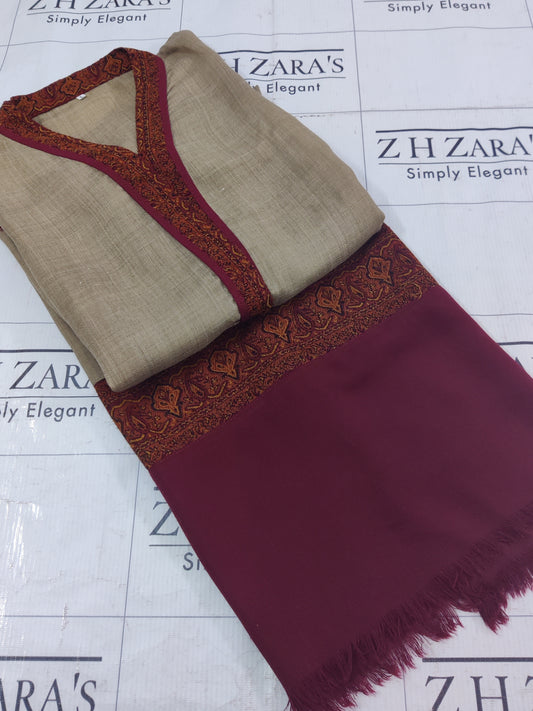 Embroidered Maroon Pashmina 3pc