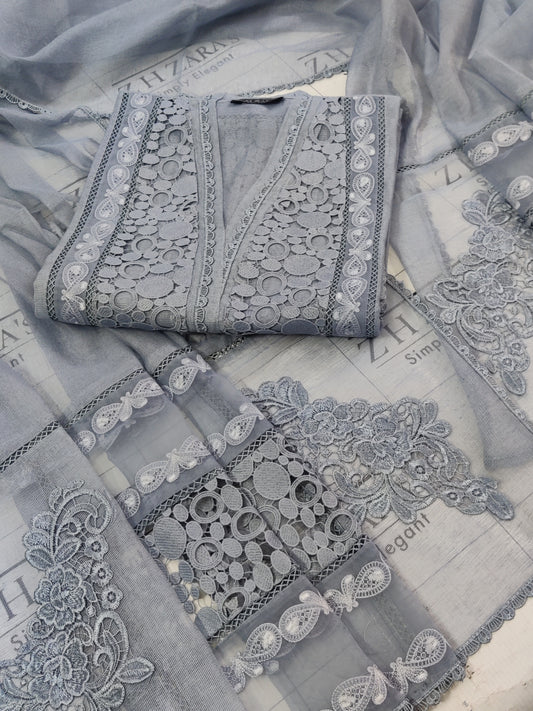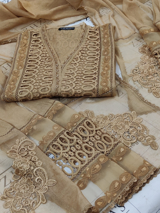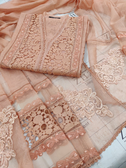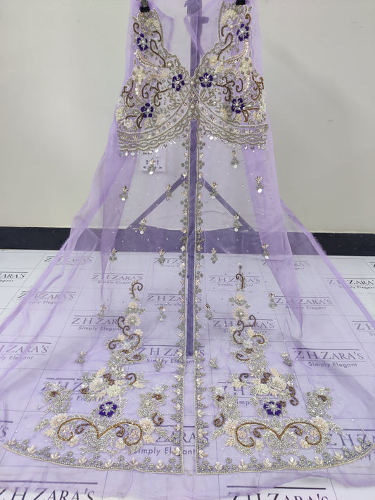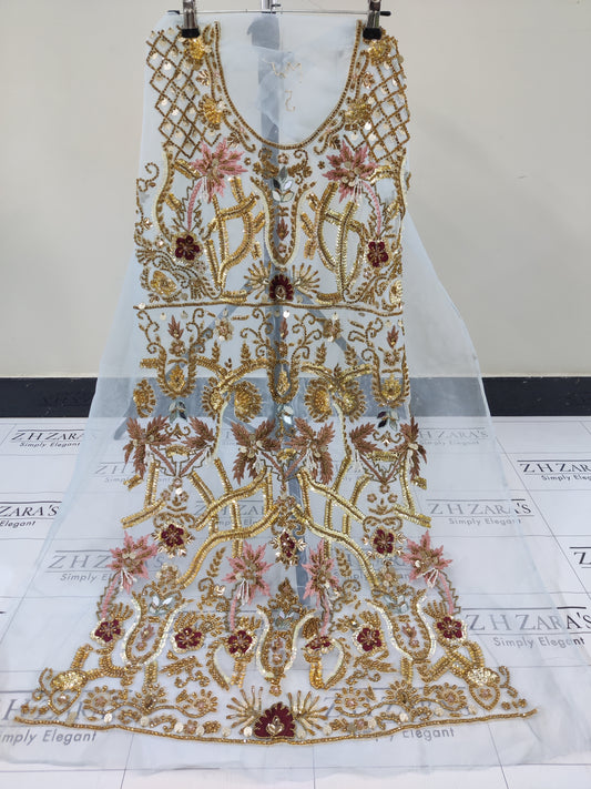 Skin Foan Front Open Gown Hand Embellished 2pc