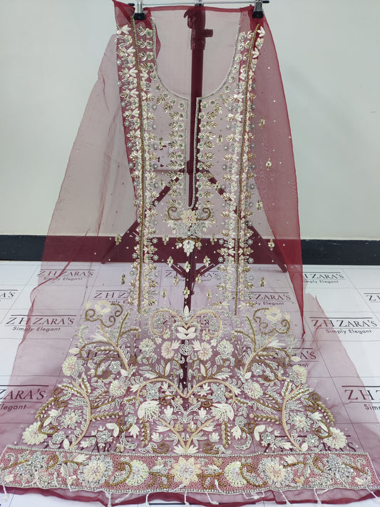 Maroon Peacock Hand Embellished 2pc & 3pc