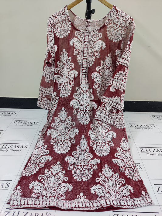 Sold outMaroon White Stitched 2pc