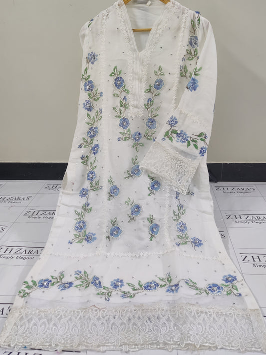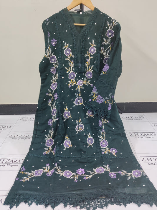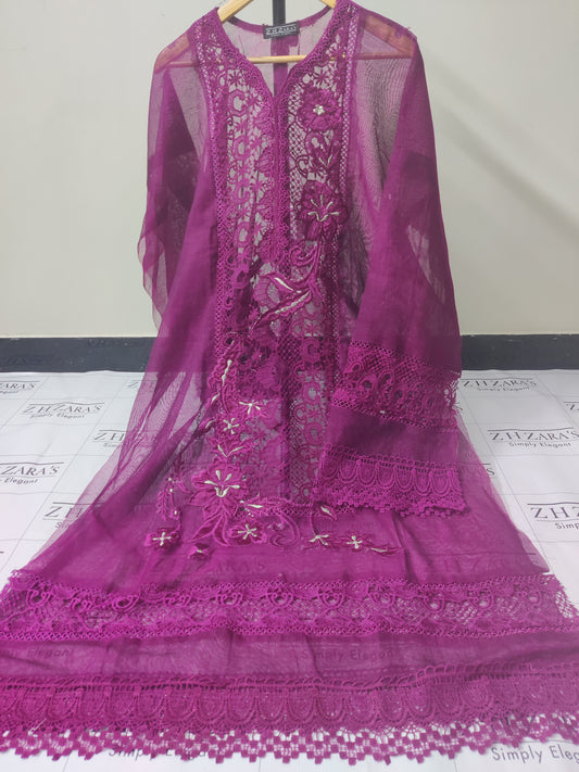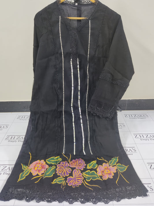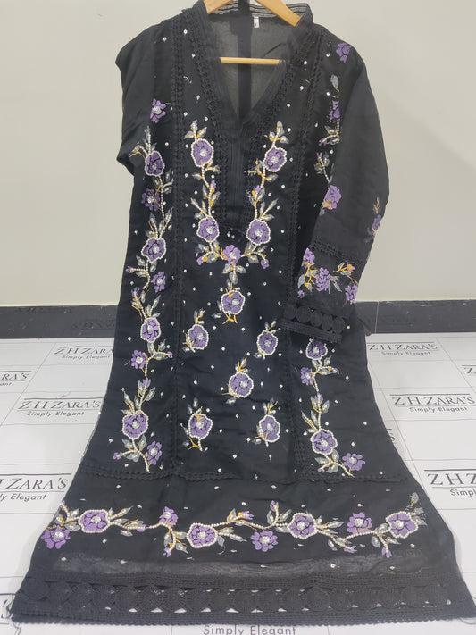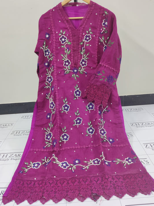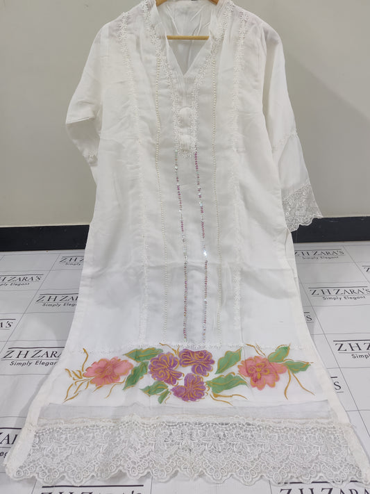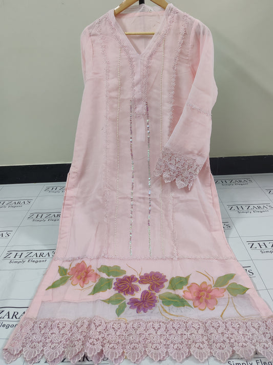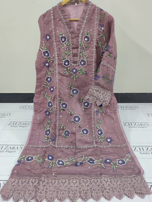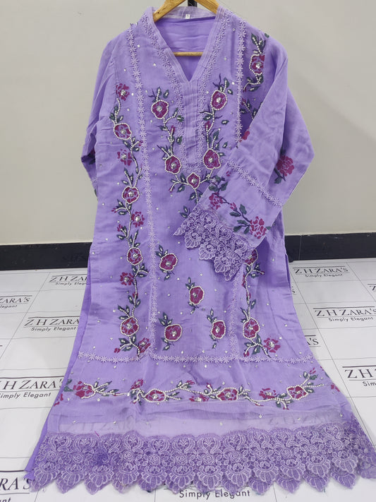 Floral Lilac Purple Hand Painted Stitched 2pc