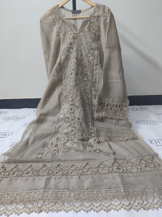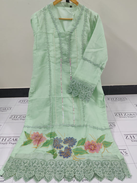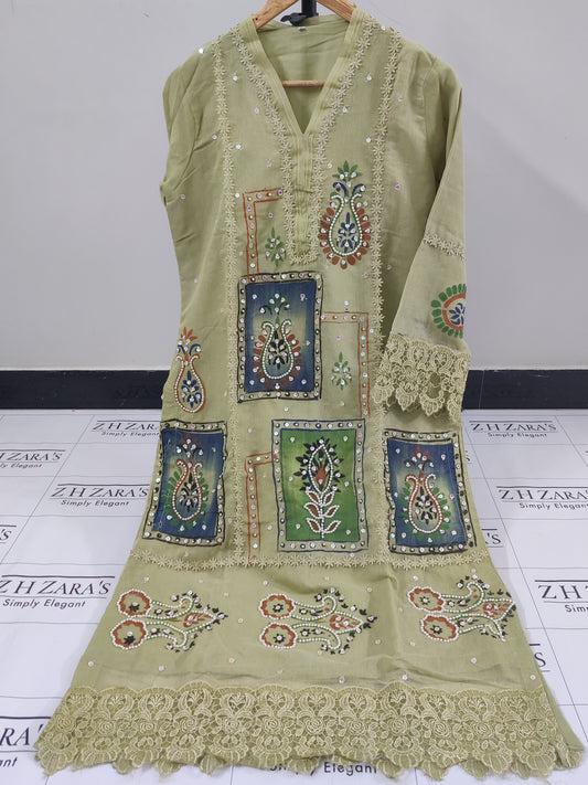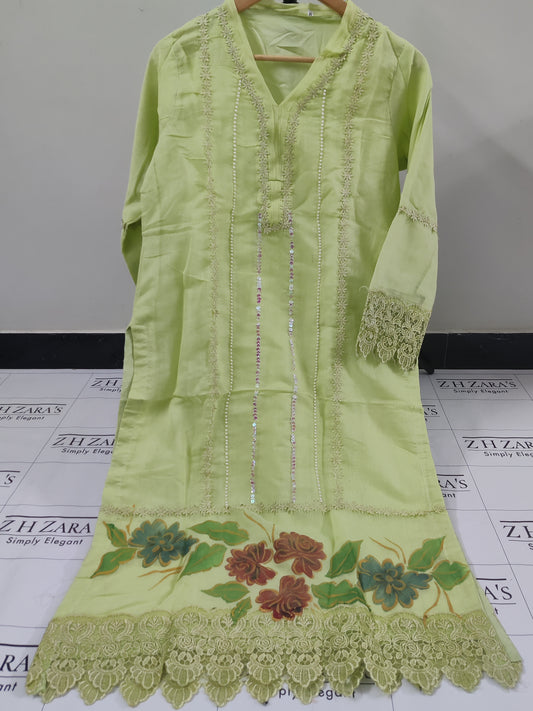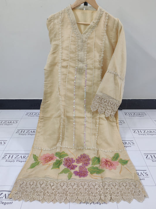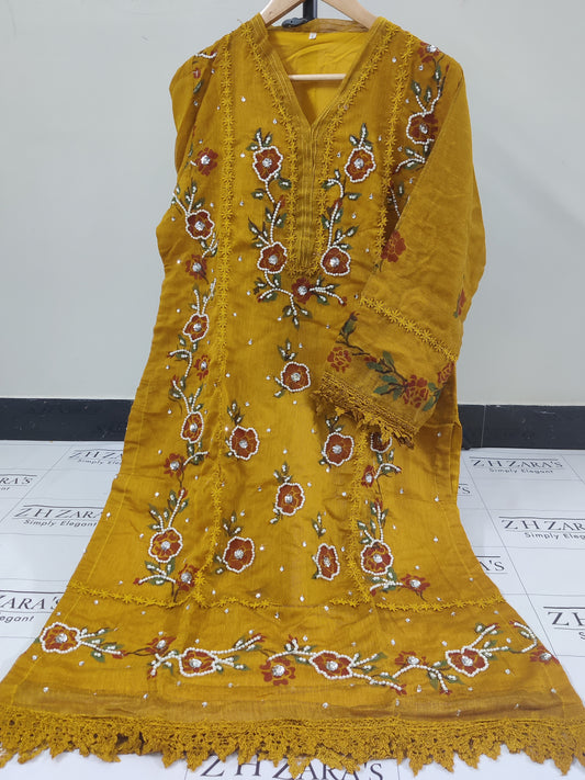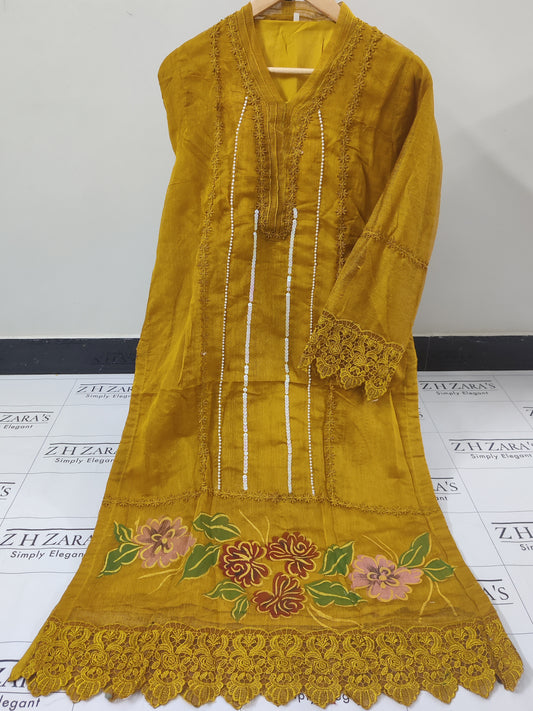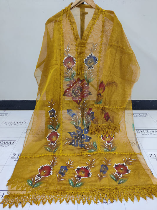 Mustard Hand Embellished Hand Painted Cutwork 2pc
