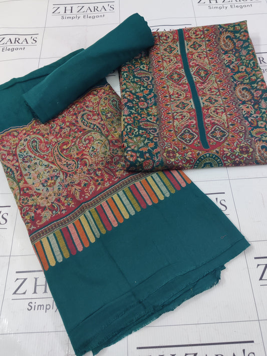 Sold outPeacock Green Full Kani Pashmina 3pc