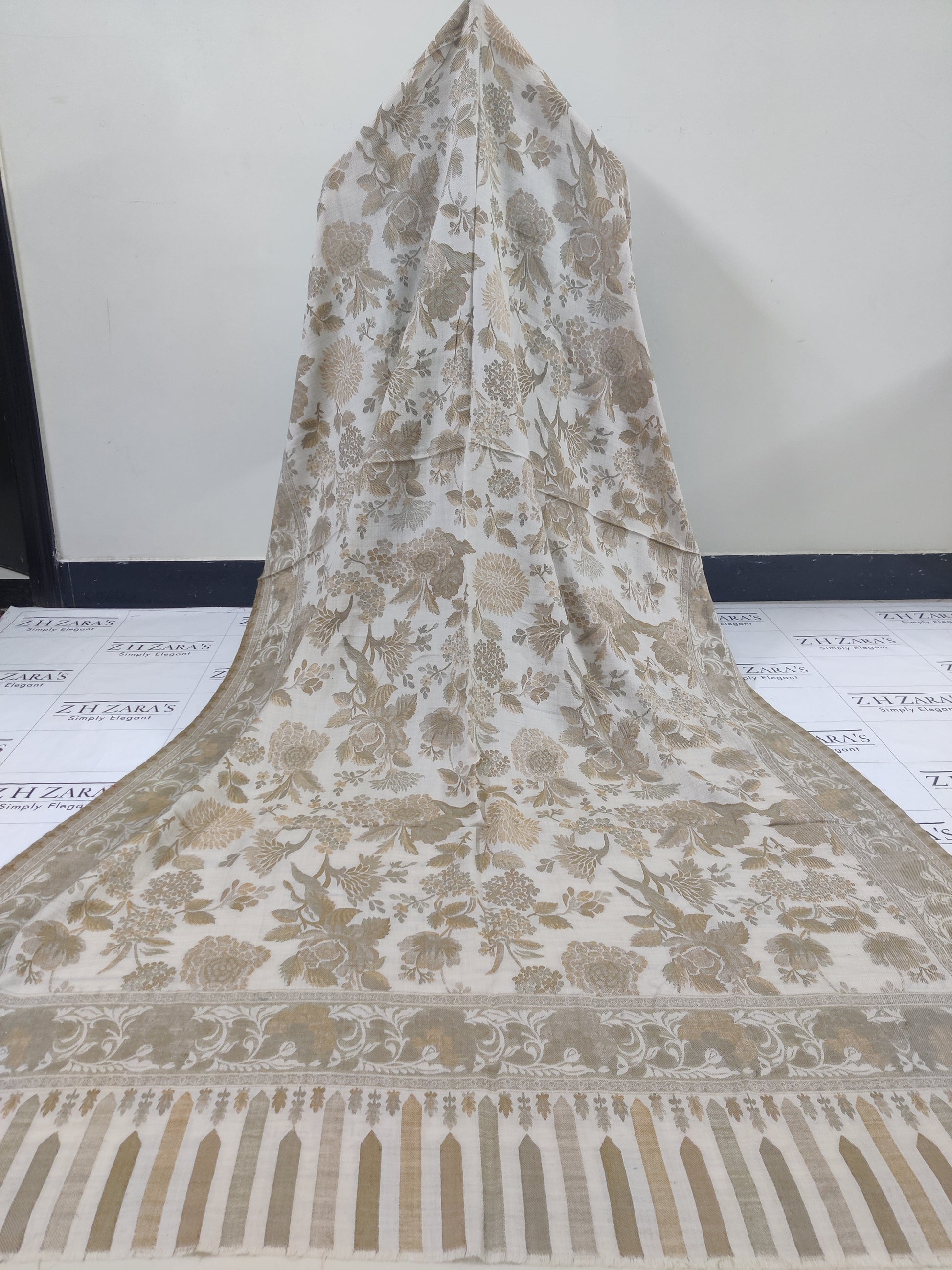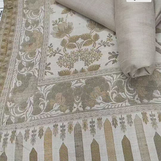 Beige Floral Kani Pashmina 3pc