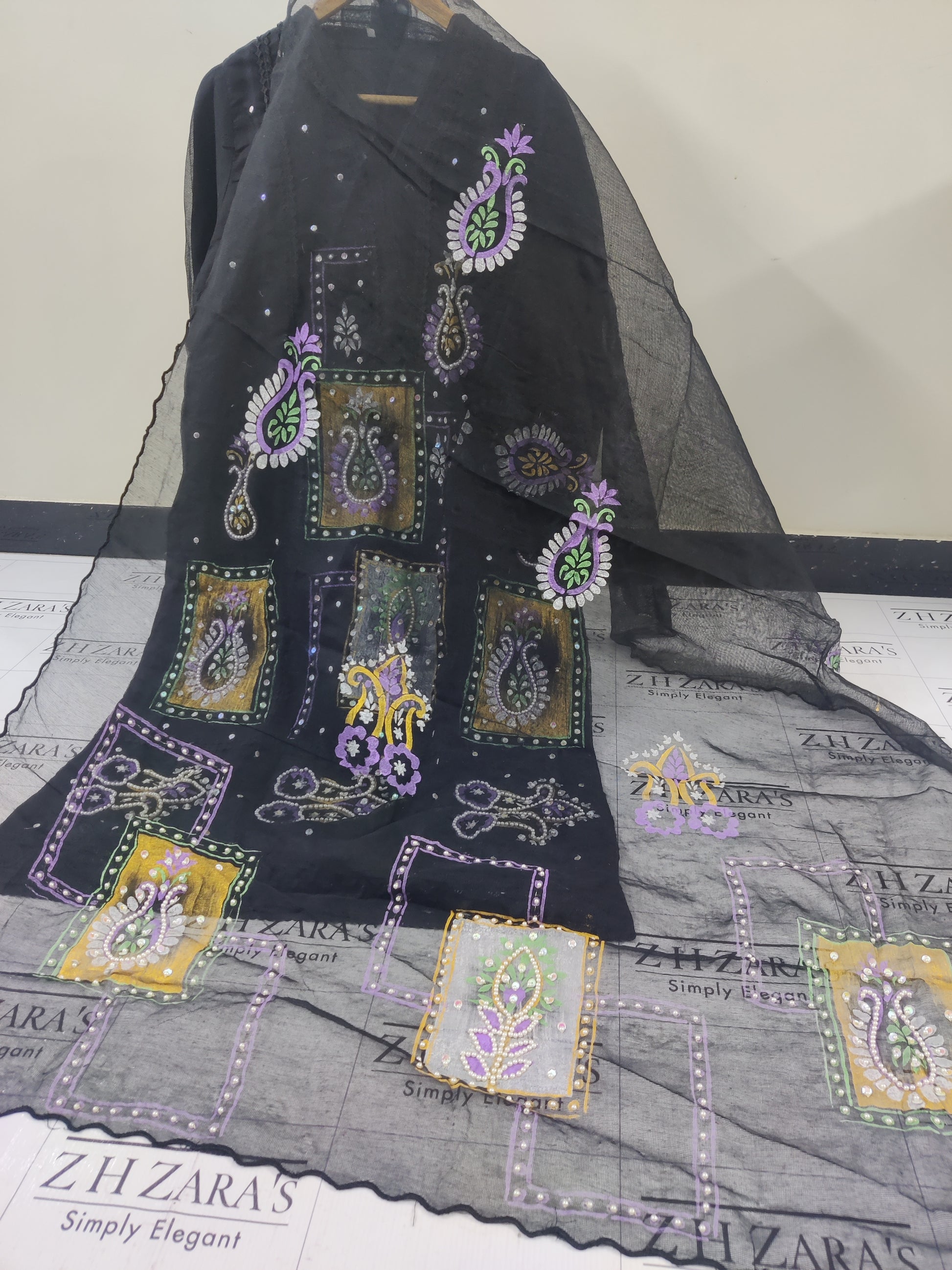 Black Frame Hand Painted Stitched 2pc