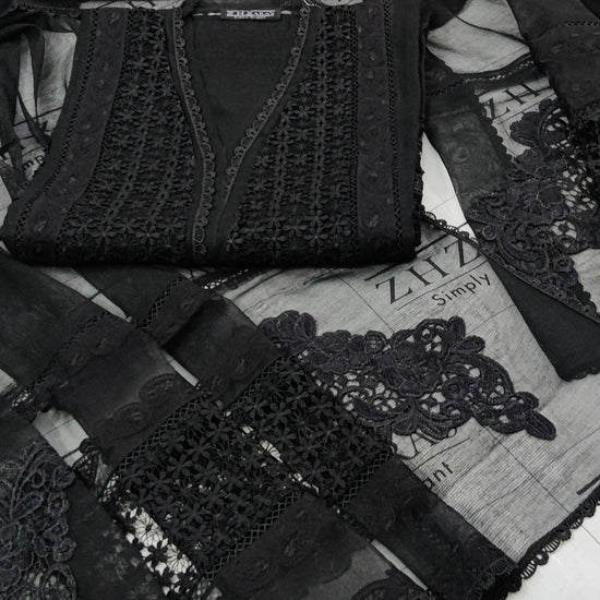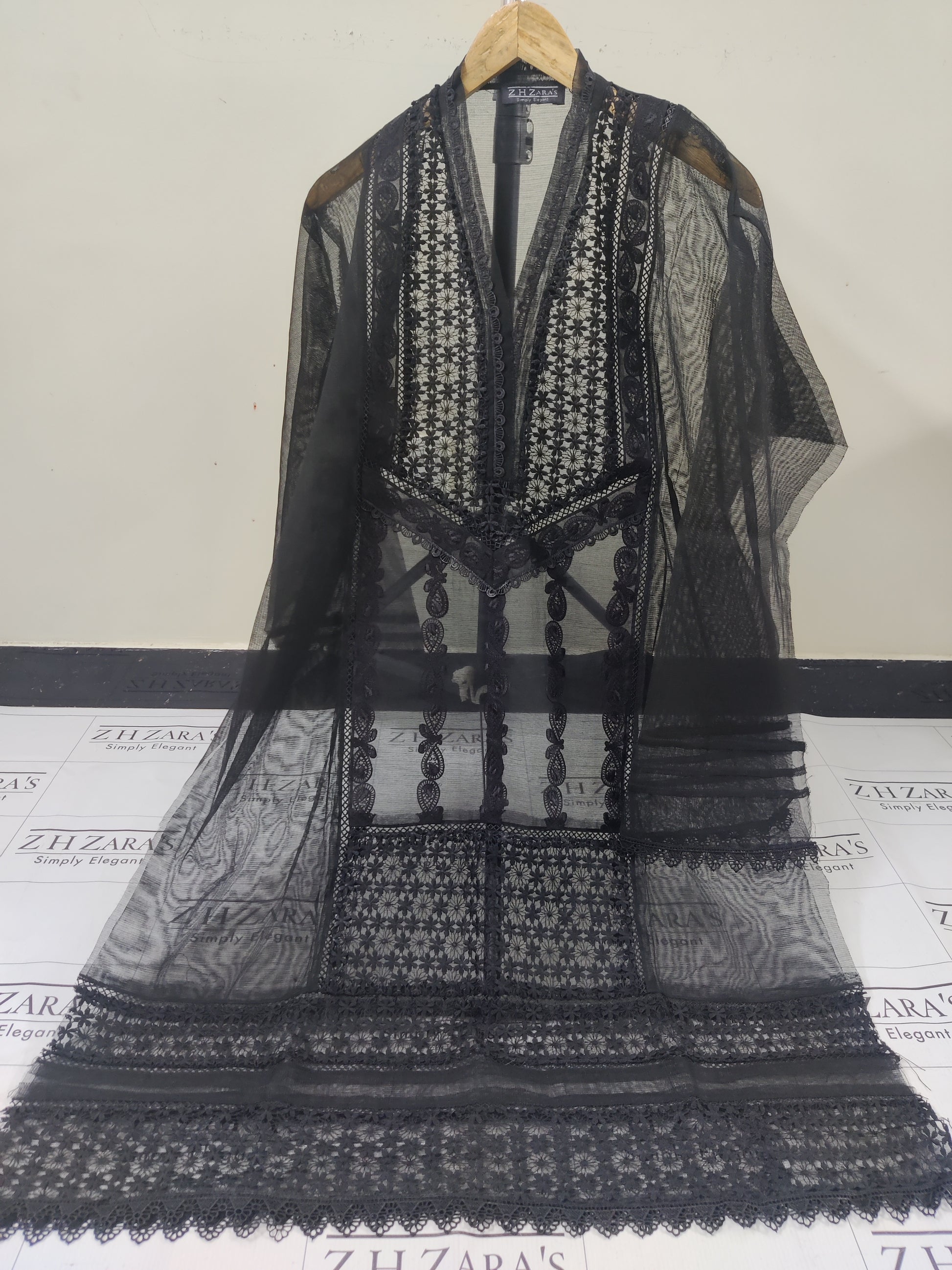 Elevate your wardrobe with our stunning collection featuring intricate crochet panels, delicate laces, and exquisite crochet cutwork Daman. Our pieces offer timeless style and unparalleled craftsmanship. Paired with crochet and embroidery net duppata.