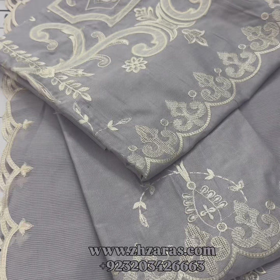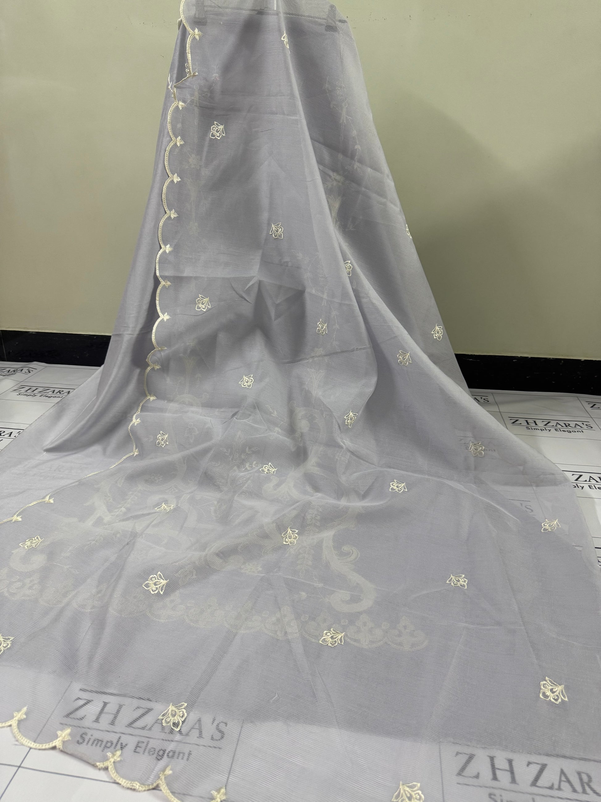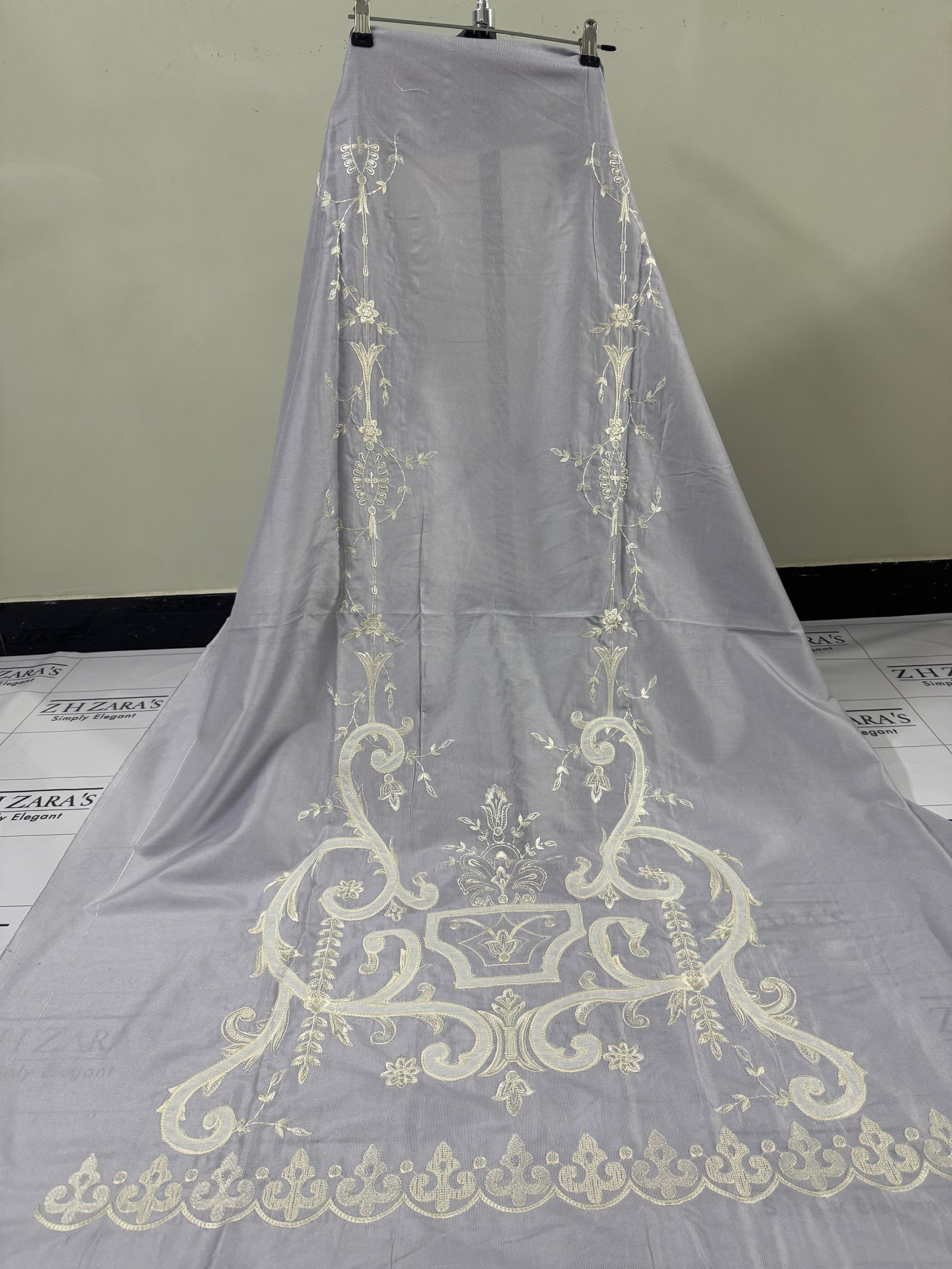 Crafted in luxurious Resham Silk with premium embroidery, intricate cutwork, and organza appliqué. A timeless blend of grace and sophistication. 💫