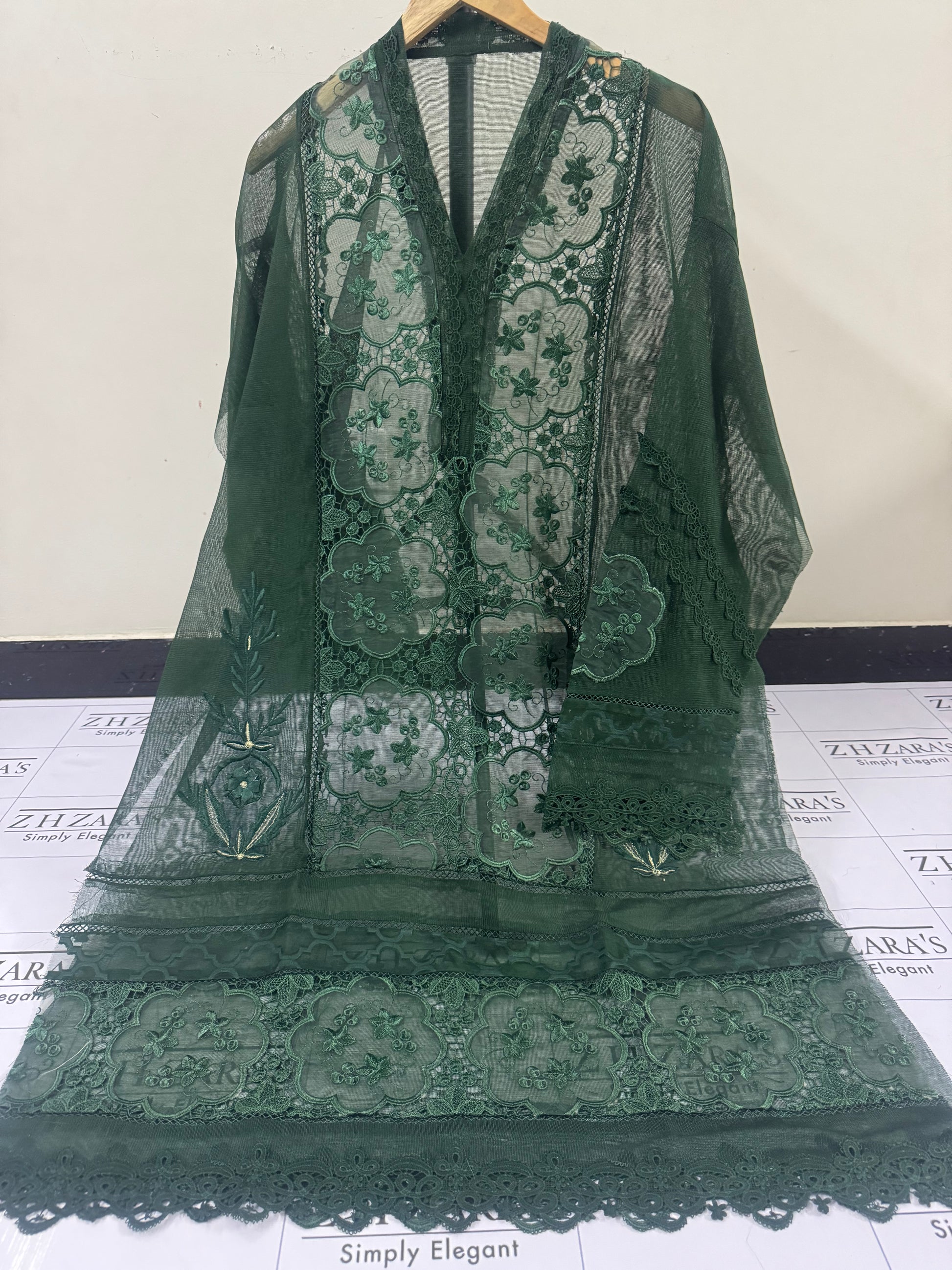 This beautifully designed outfit features intricate embroidery, delicate lace details, and a graceful dupatta that adds timeless charm. Crafted for women who love subtle luxury and refined style.
