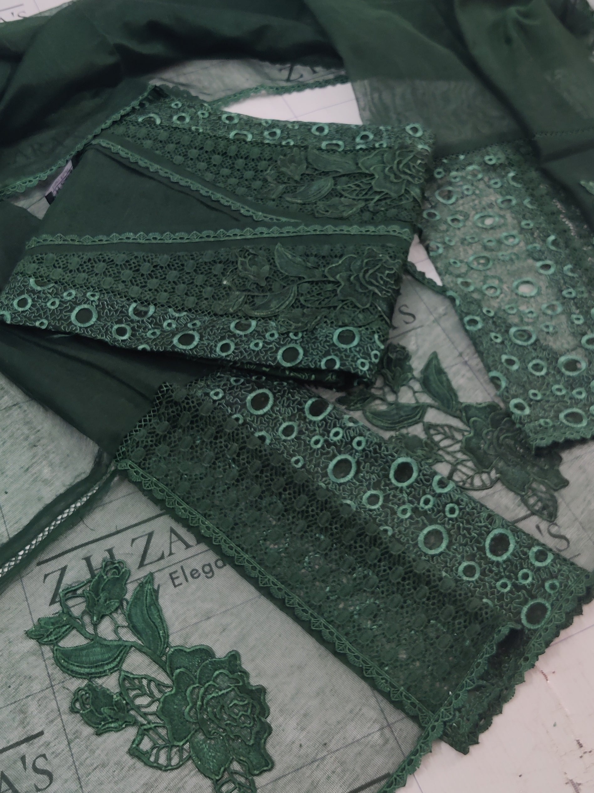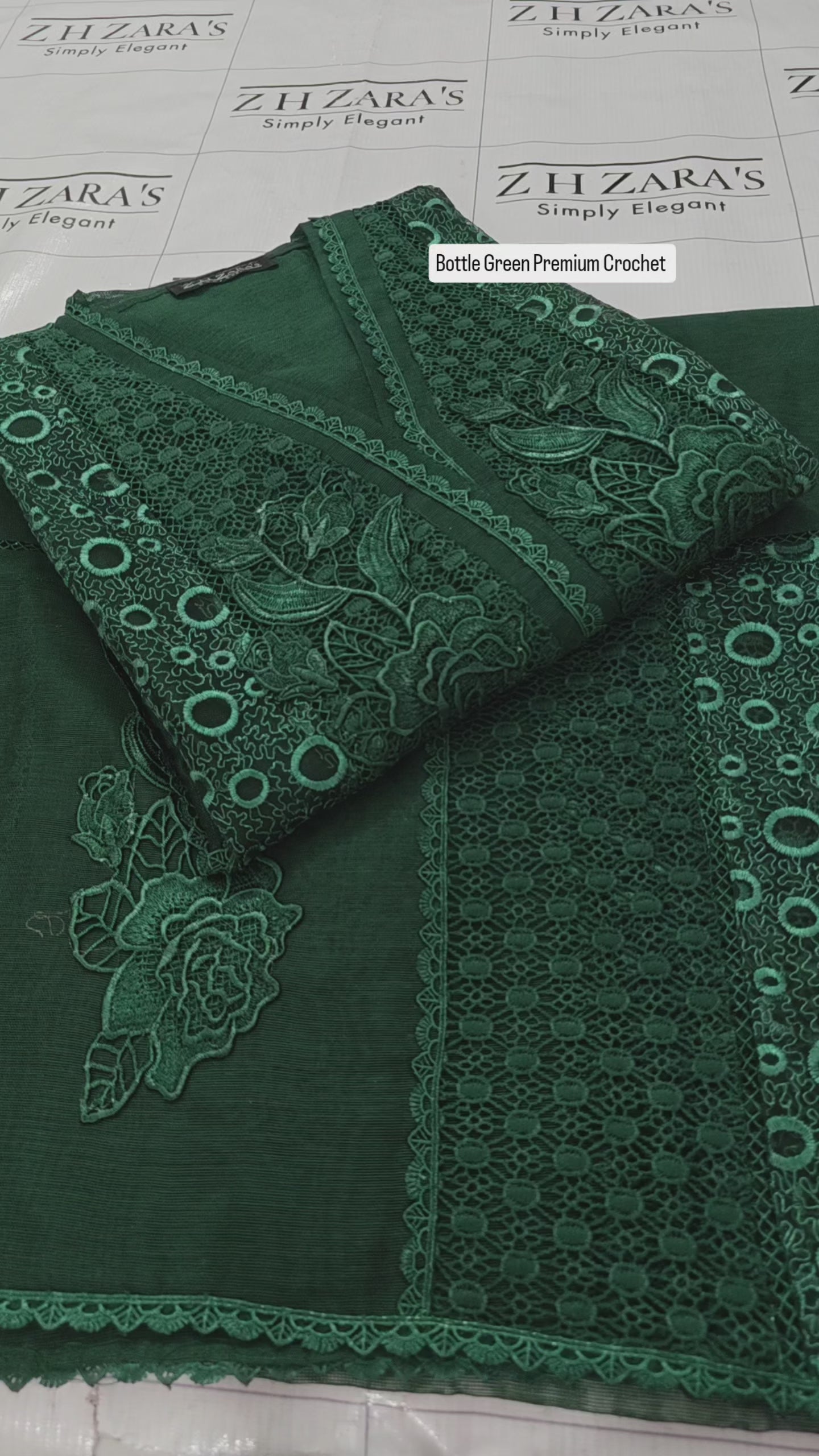 Elevate your wardrobe with our stunning collection featuring intricate crochet panels, delicate laces, and exquisite cutwork embroidery Daman. Our pieces offer timeless style and unparalleled craftsmanship. Paired with crochet and embroidery net duppata.