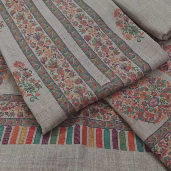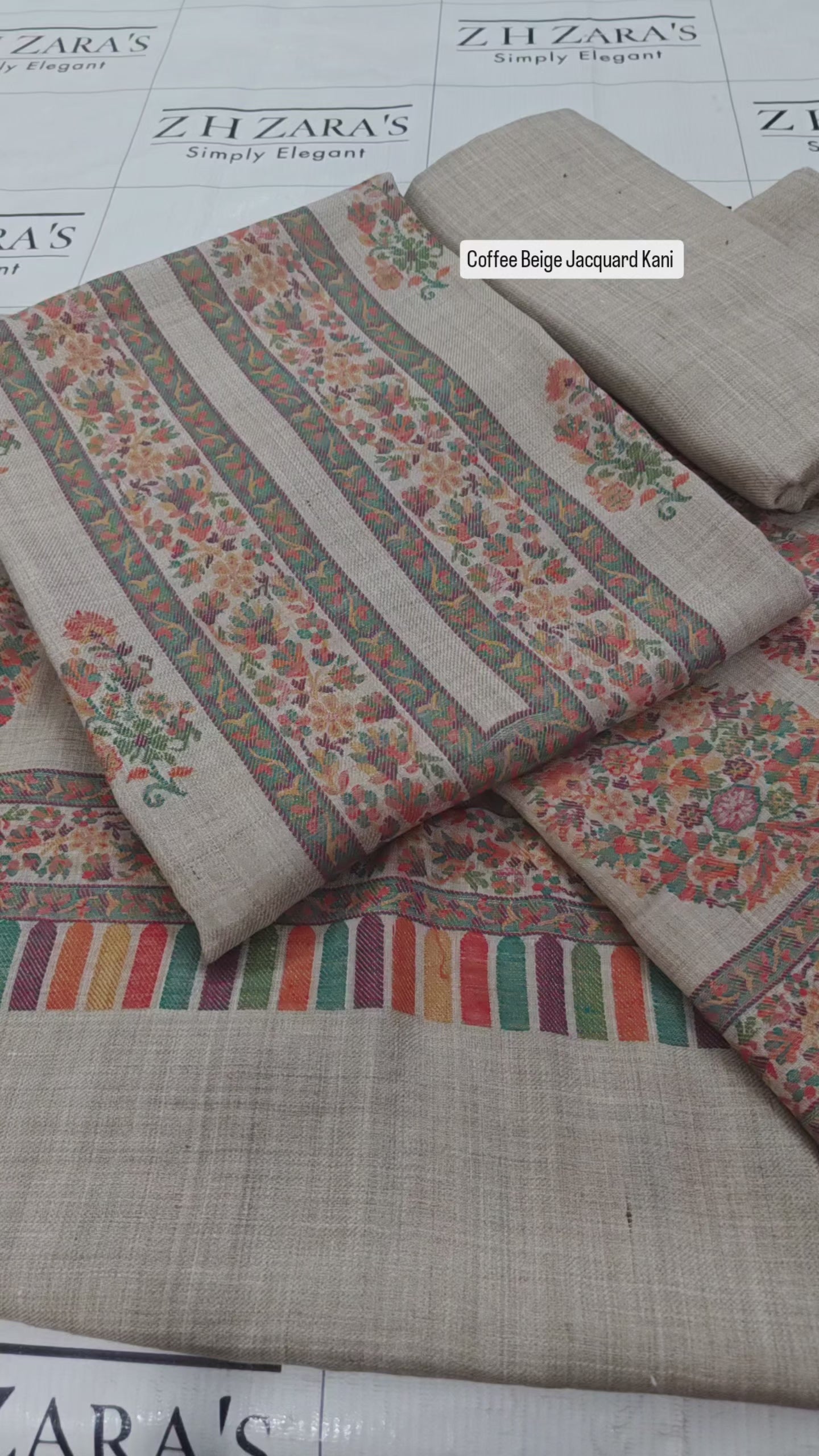 Coffee Beige Jacquard Kani Pashmina 3pc