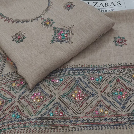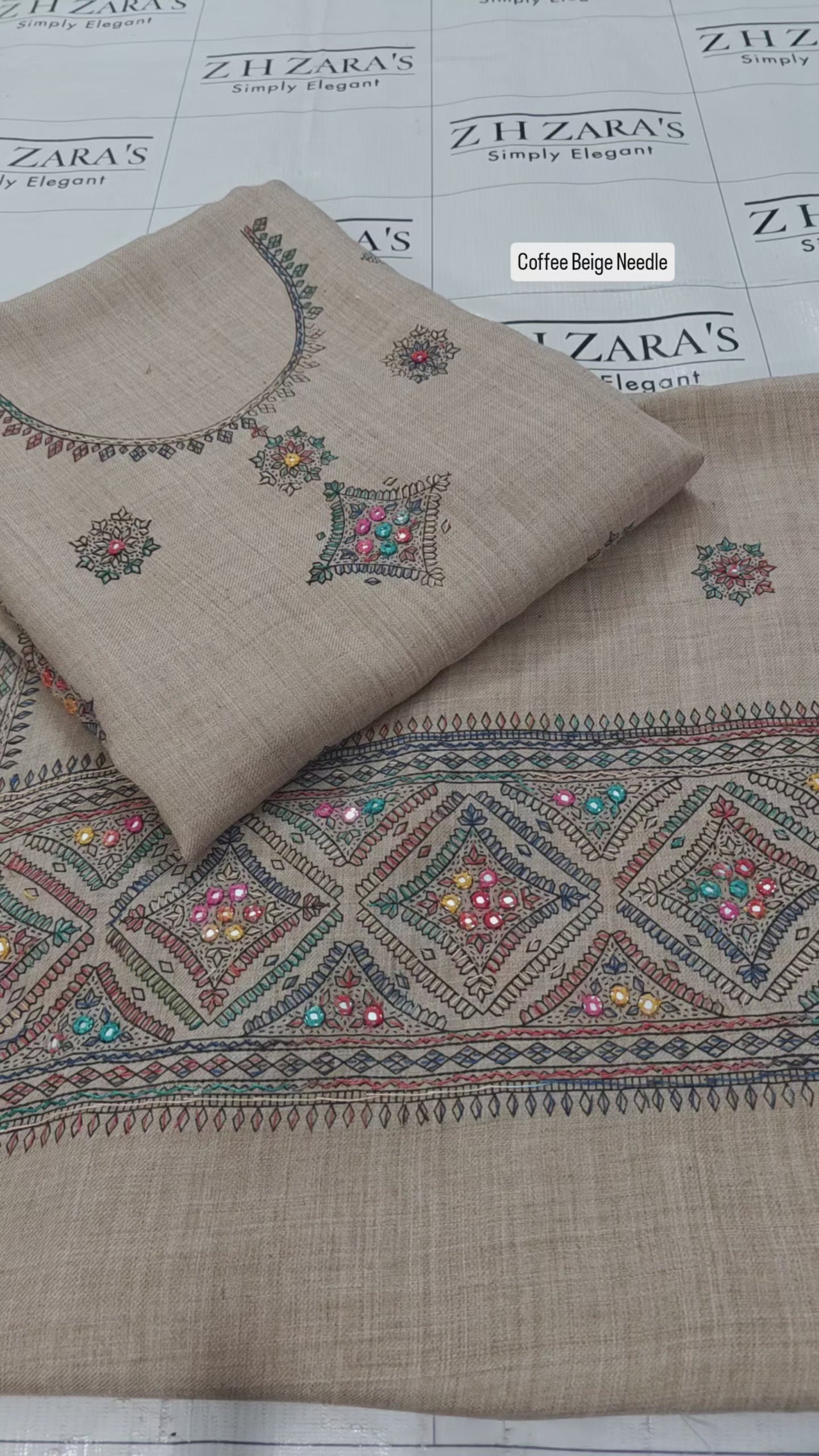 Coffee Beige Needle Embroidery Pashmina 3pc