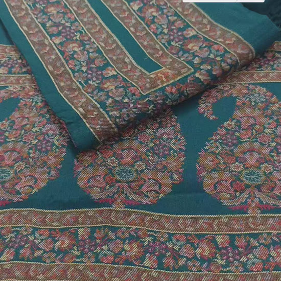 Emerald Peacock Green Jacquard Kani Pashmina 3pc