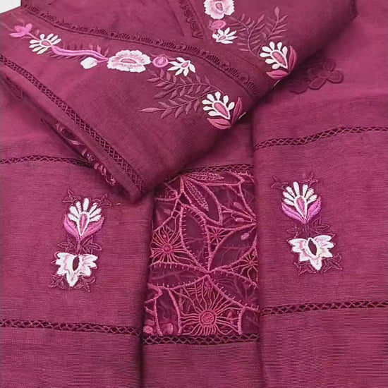 This cotton net shirt with Multi Panels and pastel chromatic embroidery and cutwork Daman paired with Embroidered duppta. Perfect for this Season.