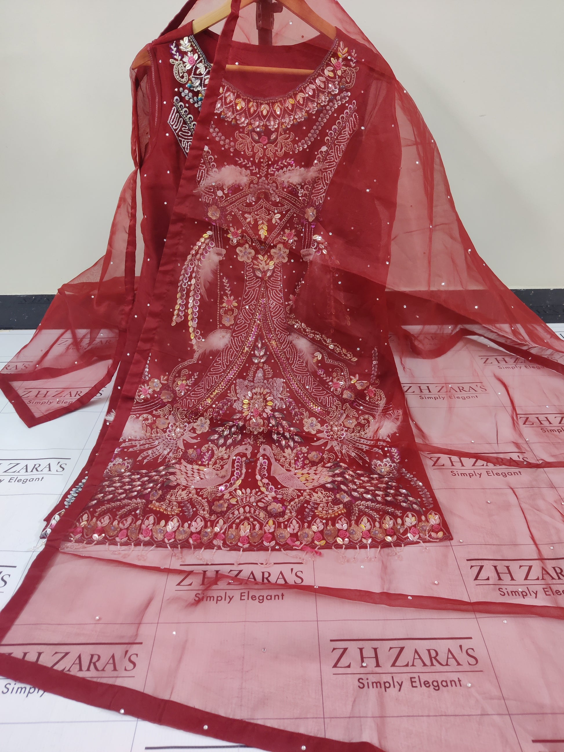 Maroon Peacock Hand Embellished 2pc & 3pc