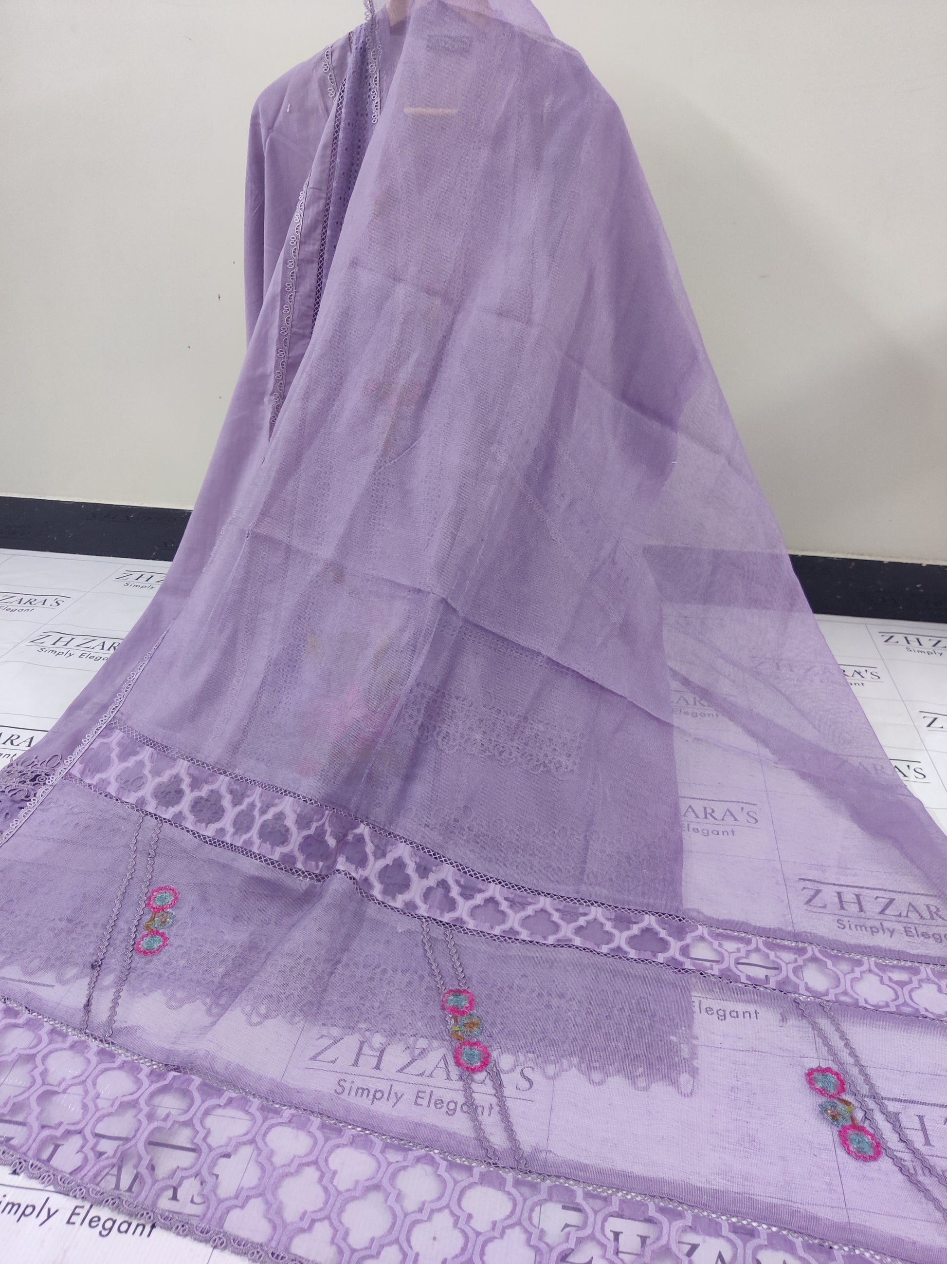 This Luxury shirt with stunning details in multi embroidery and chikan center panel . It is complimented with an eye-catching embroidery paneled cotton net dupatta.