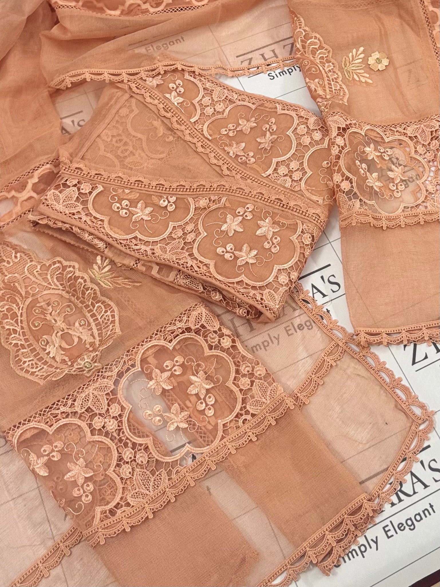 ✨ Fully embroidered organza cutwork