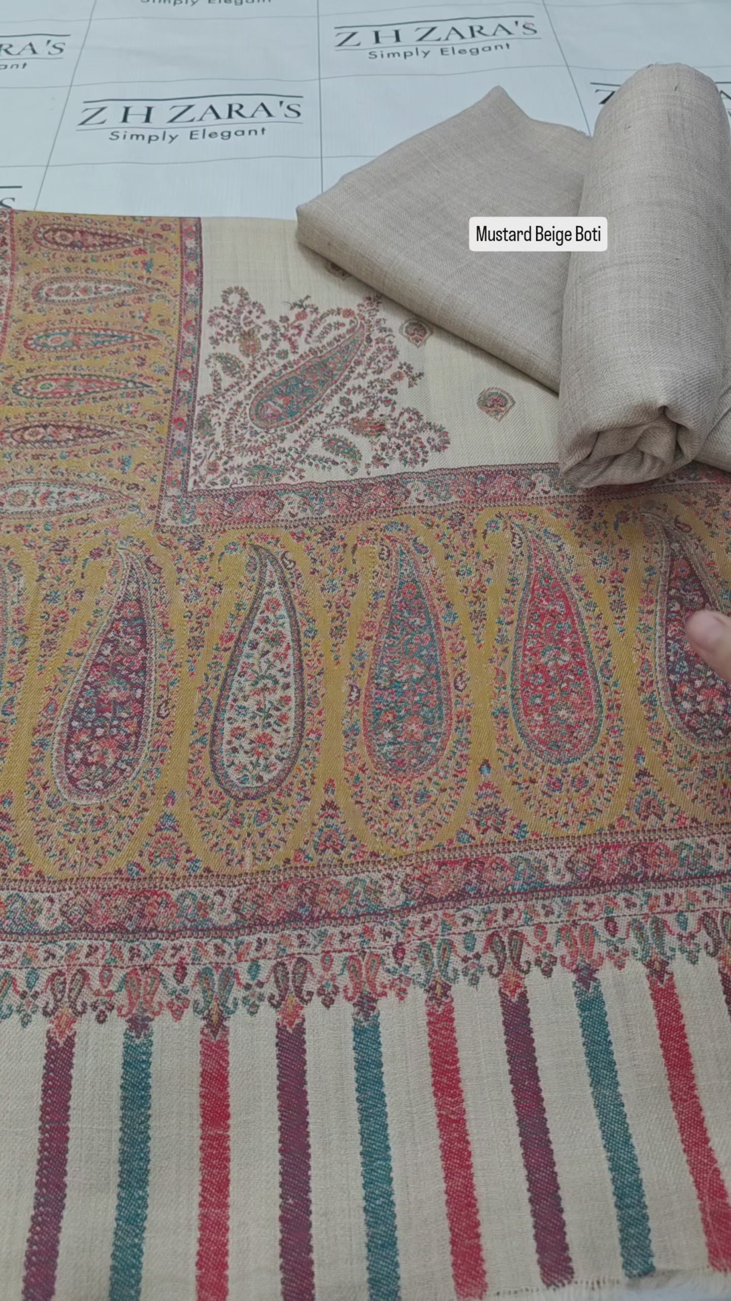 Mustard Beige Boti Pashmina Shawl & 3pc