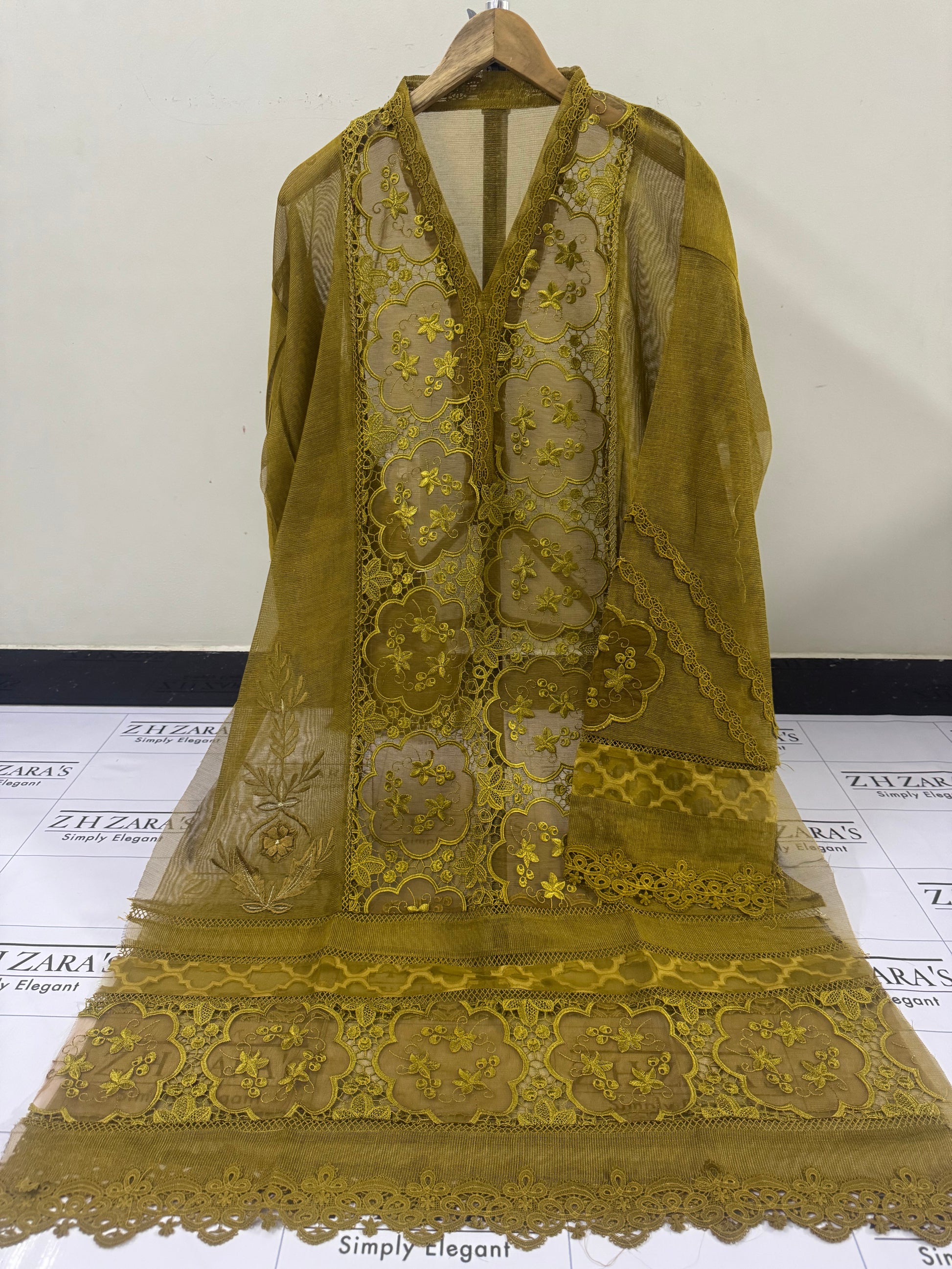 ✨ Fully embroidered organza cutwork
