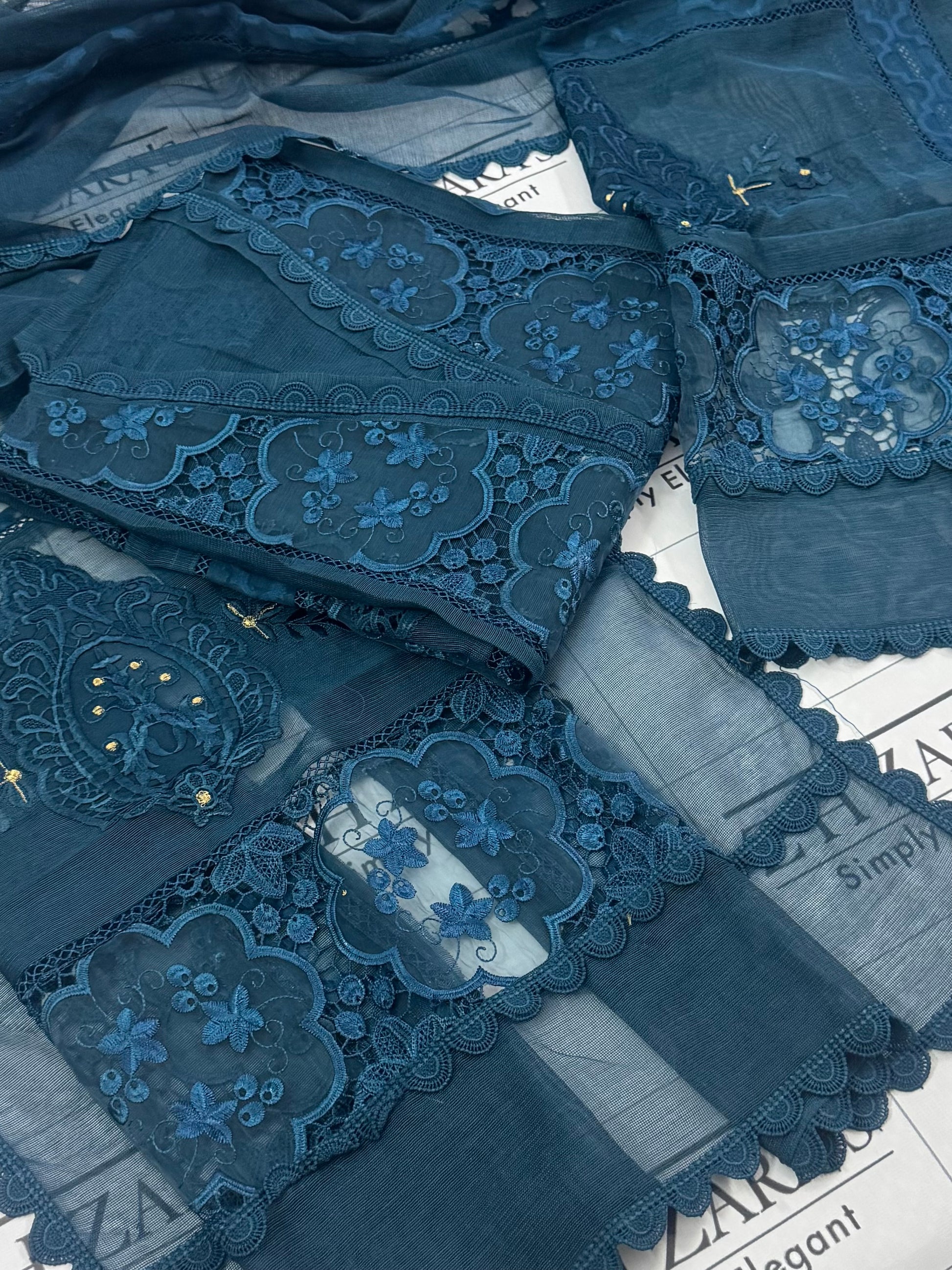 This beautifully designed outfit features intricate embroidery, delicate lace details, and a graceful dupatta that adds timeless charm. Crafted for women who love subtle luxury and refined style.