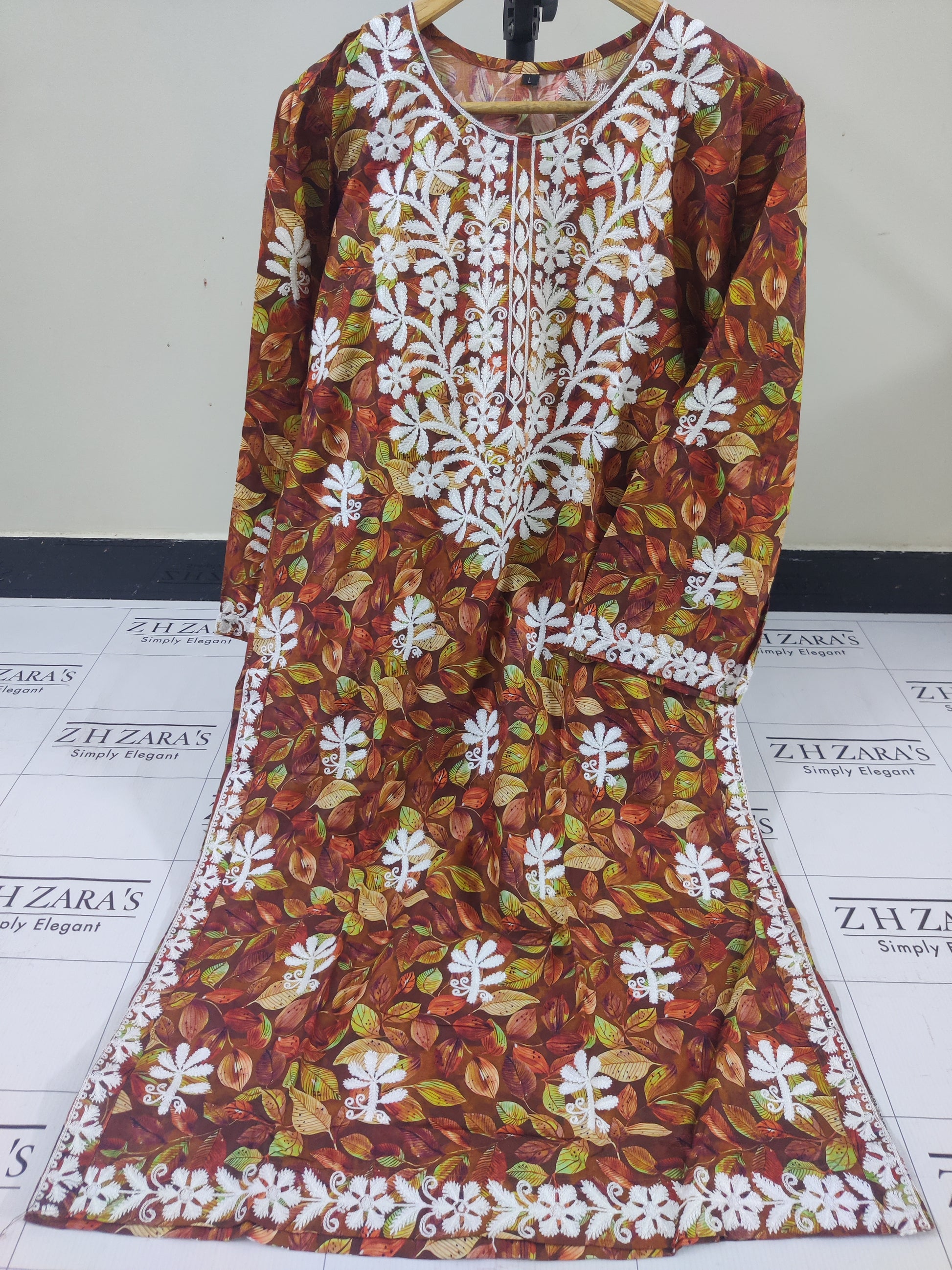 Beat the heat in style with our Pure Lawn Co-Ord Set, designed for ultimate comfort and elegance. Made from lightweight, breathable fabric ideal for summer, this outfit features exquisite heavy anchor embroidery on the neckline, daman, and trouser painchas. Paired with flowy palazzo pants, it offers a chic and airy silhouette that’s both modern and timeless. Perfect for casual outings or festive gatherings.