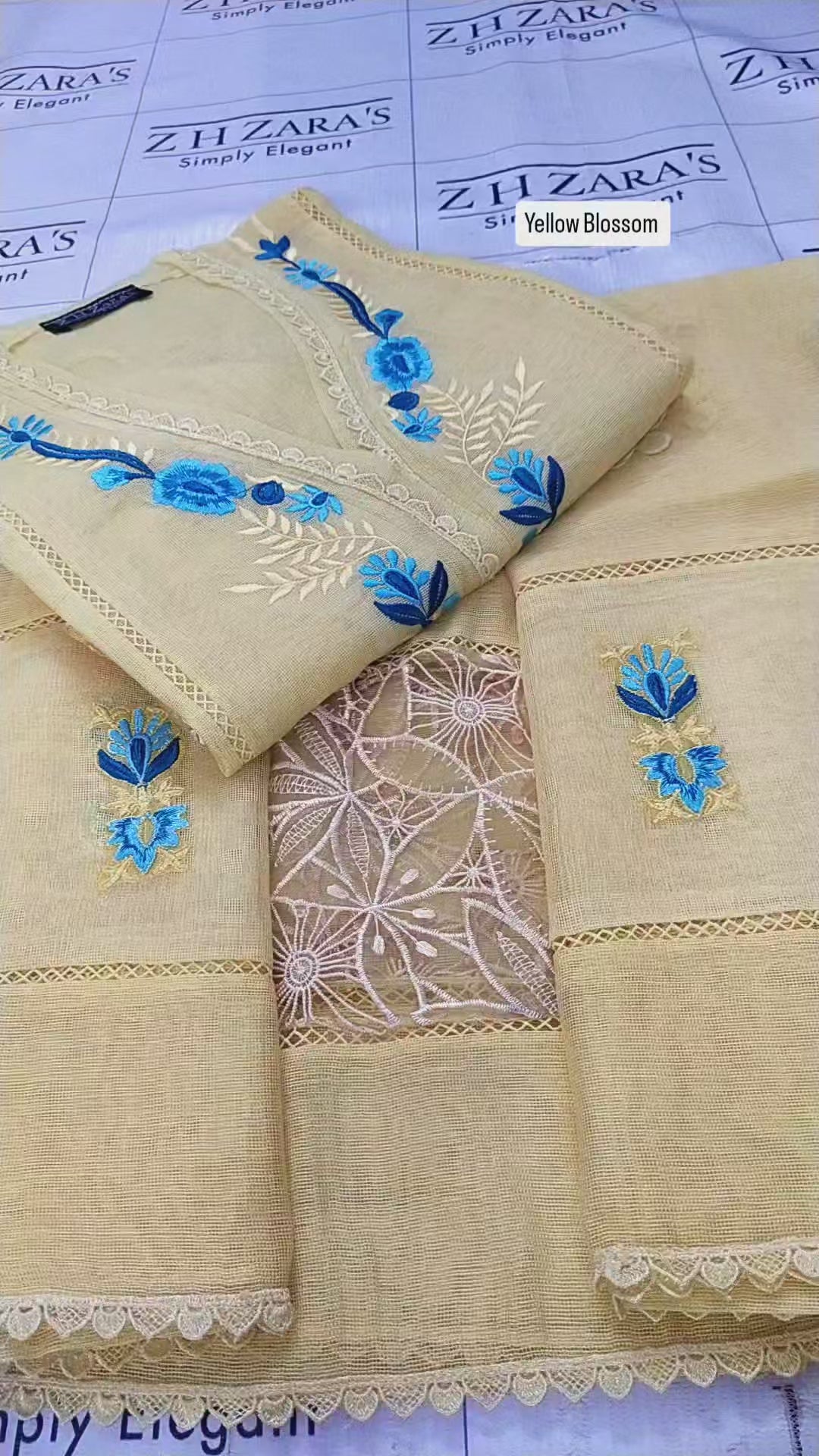 This cotton net shirt with Multi Panels and pastel chromatic embroidery and cutwork Daman paired with Embroidered duppta. Perfect for this Season.