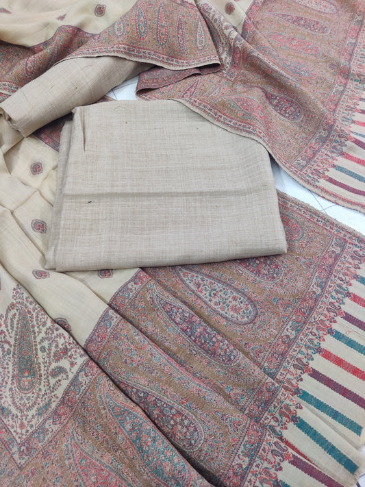 Sold outBeige Boti Pashmina Shawl & 3pc