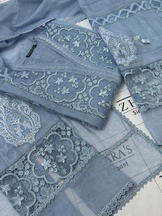 Peacock Teal Green Resham Silk Cutwork 3pc