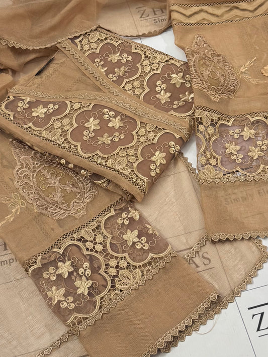 Sold outPeachy Pink Resham Silk Cutwork 3pc